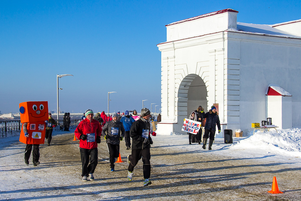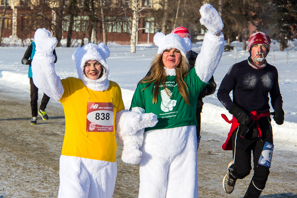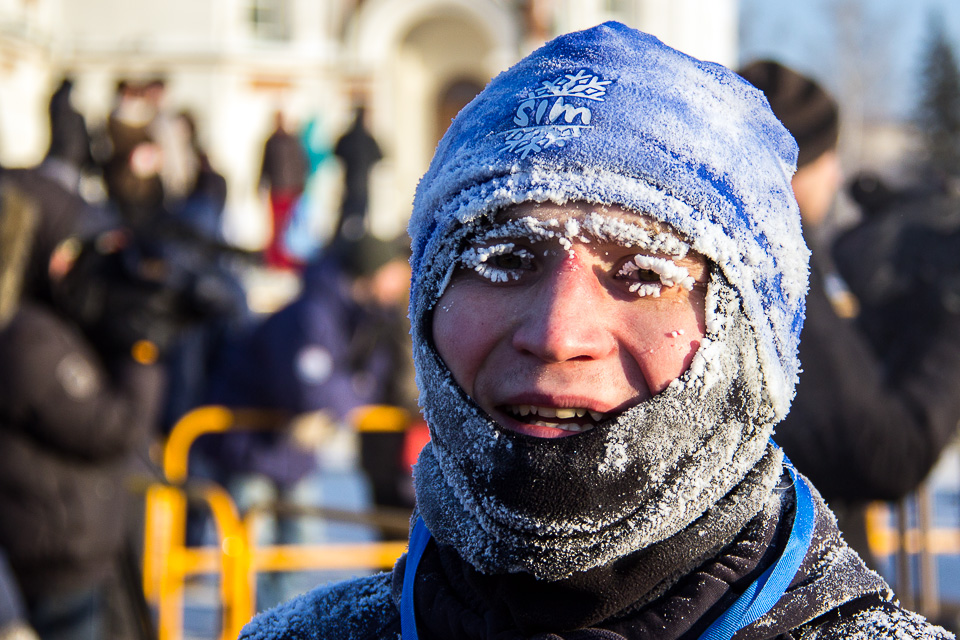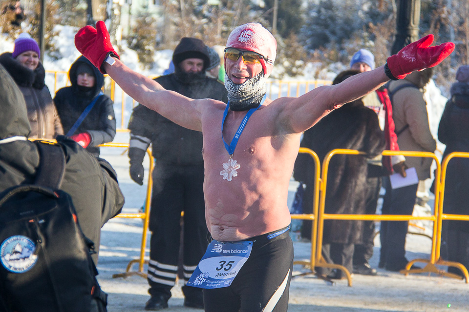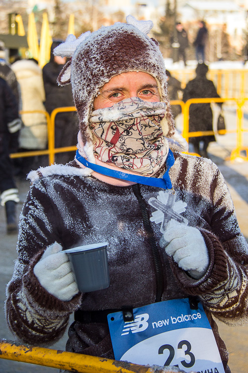 Чуть более 800 спортсменов из России и 10 зарубежных стран вышли сегодня на две дистанции самого необычного в мире зимнего забега при температуре –22°C.