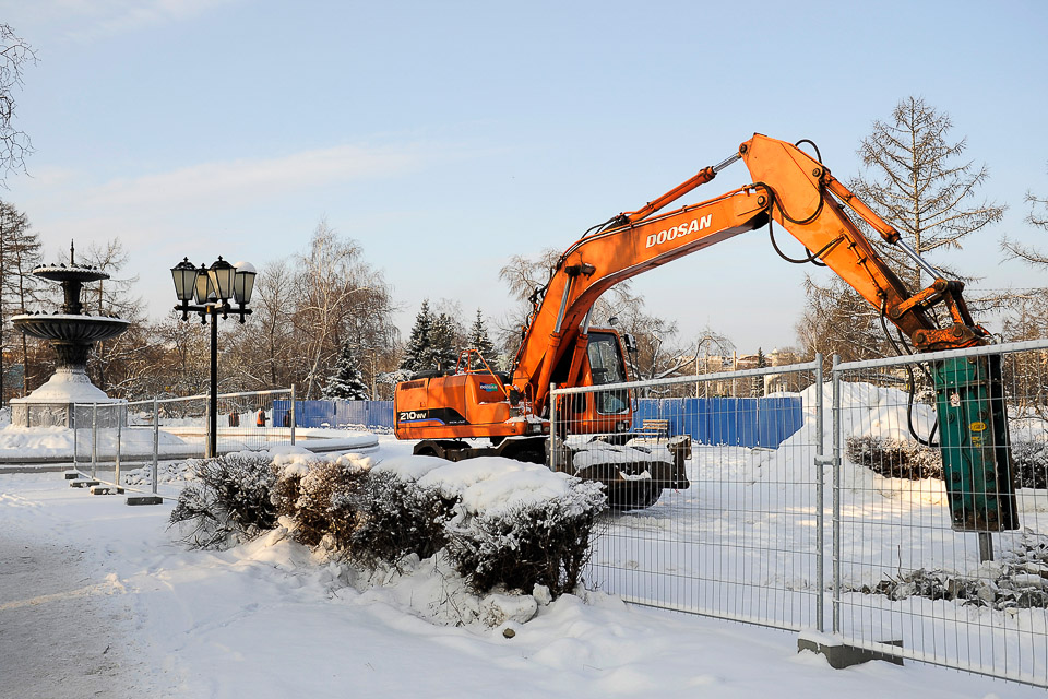 Несмотря на холода, в Омске продолжается реконструкция Любинского проспекта и прилегающих к проспекту зеленых зон. Заказчиком работ выступает Фонд стратегического развития Омской области, реализацию проекта координирует администрация города.