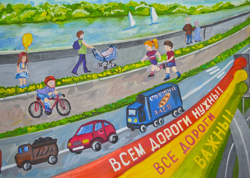 Всем дороги нужны, все дороги важны. Екатерина Макеева (СОШ № 118), I место в номинации «Лучший эскиз социальной рекламы» (15-17 лет)