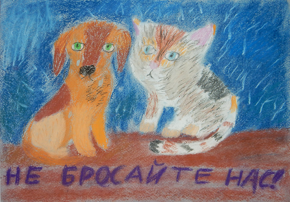 Не бросайте нас. Надежда Шутова (ДШИ № 12), II место в номинации «Лучший эскиз социальной рекламы» (6-10 лет)