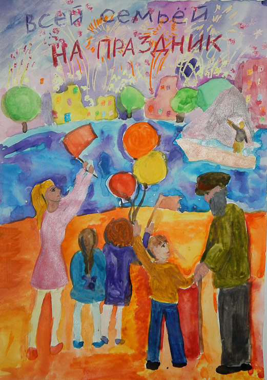 Всей семьей на праздник. Анастасия Крюкова (ЦДОД «Эврика»), лауреат в номинации «Лучший эскиз социальной рекламы» (6-10 лет)