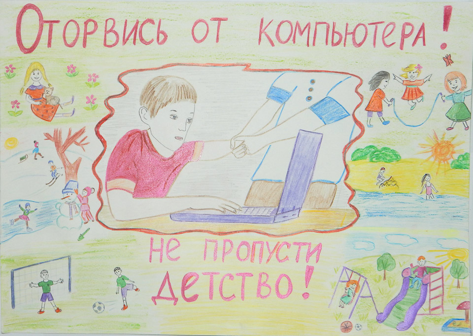 Оторвись от компьютера. Елизавета Шабалина (СОШ № 61), I место в номинации «Лучший эскиз социальной рекламы» (6-10 лет)