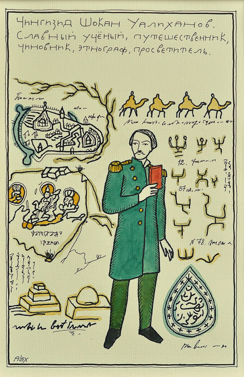 Сергей Александров, 1955 г. р. Служивые…, 2015. Картон, фанера, гелевая ручка, акварель, маркер, декоративные гвозди, темпера; 122×75. Второе место в категории «Графика»