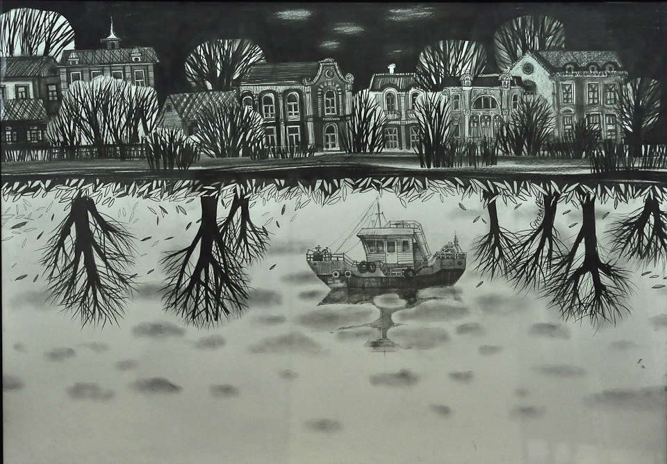 Анастасия Гурова, 1978 г. р. Лист №1 из серии «Большая вода». 2015. Бумага, карандаш; 70×100. Третье место в категории «Графика»