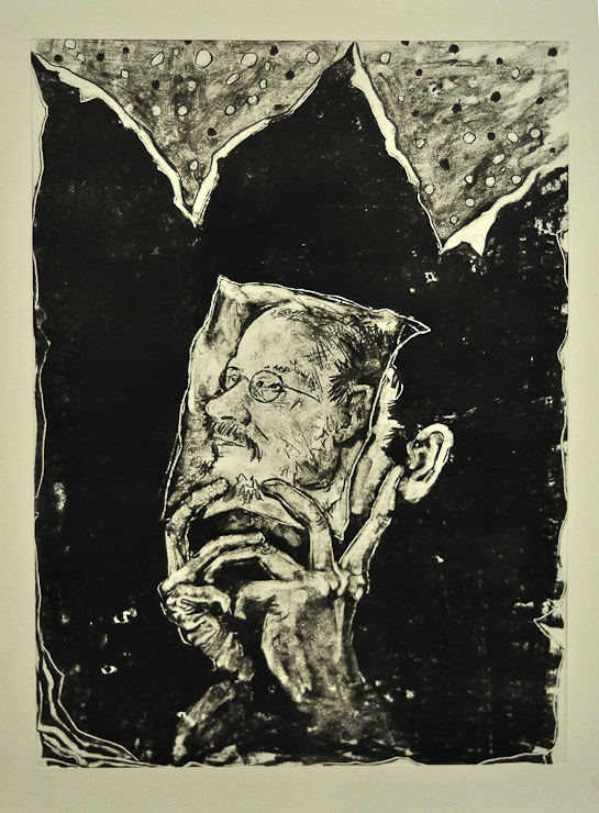 Игорь Николаев, 1975 г. р. Серия работ «Карнавал». Сорокин—король и шут. 2014. Бумага, карандаш, монотипия; 61×85. Первое место в категории «Графика»