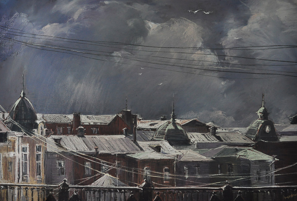 Мария Лелякина, 1986 г.р. Громада туч росла вдали… 2015. Бумага, пастель; 50×70. Поощрительный приз «Традиция»
