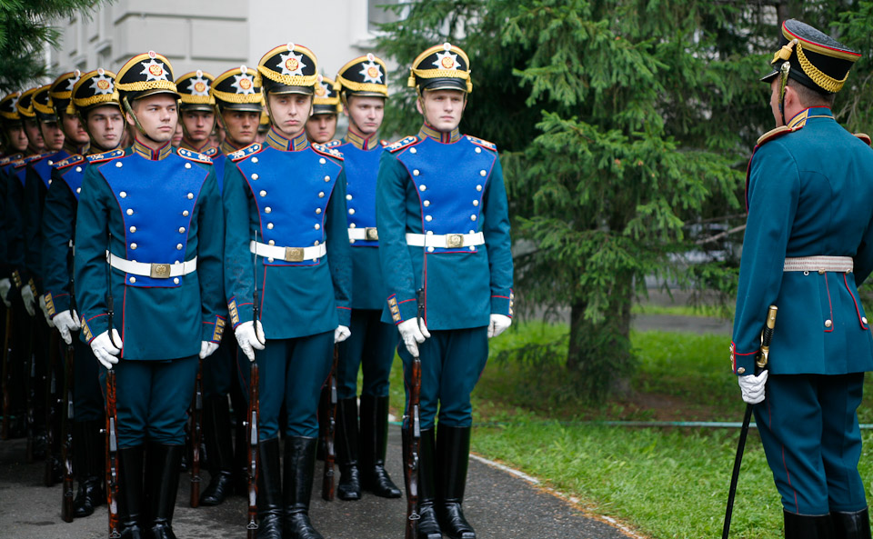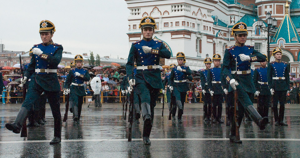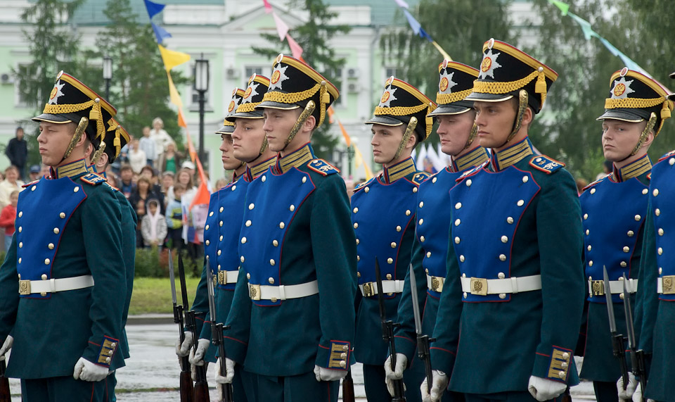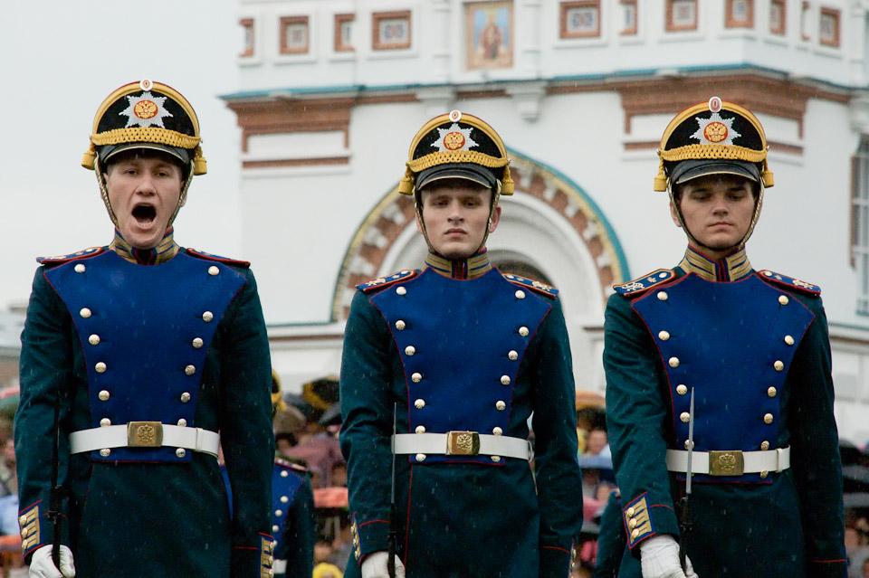 Настоящим подарком городу стало выступление Президентского полка и Президентского оркестра Службы коменданта Московского Кремля у стен Успенского кафедрального собора.