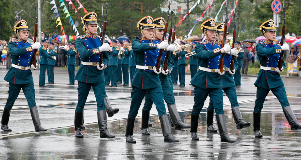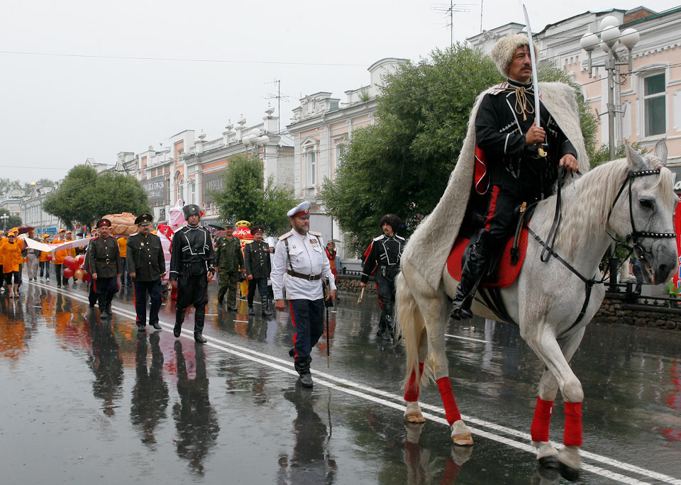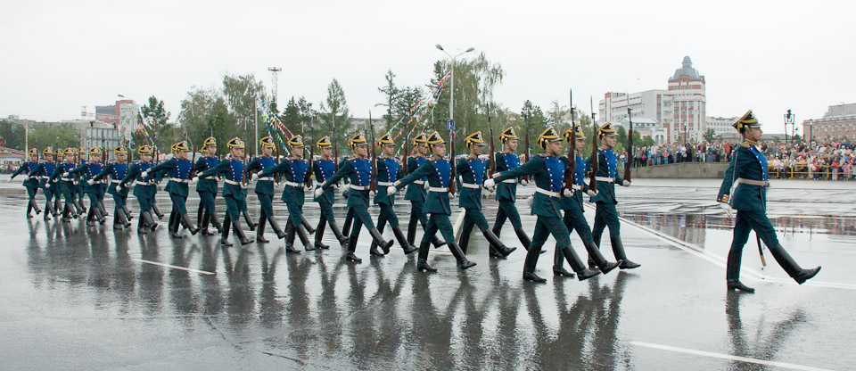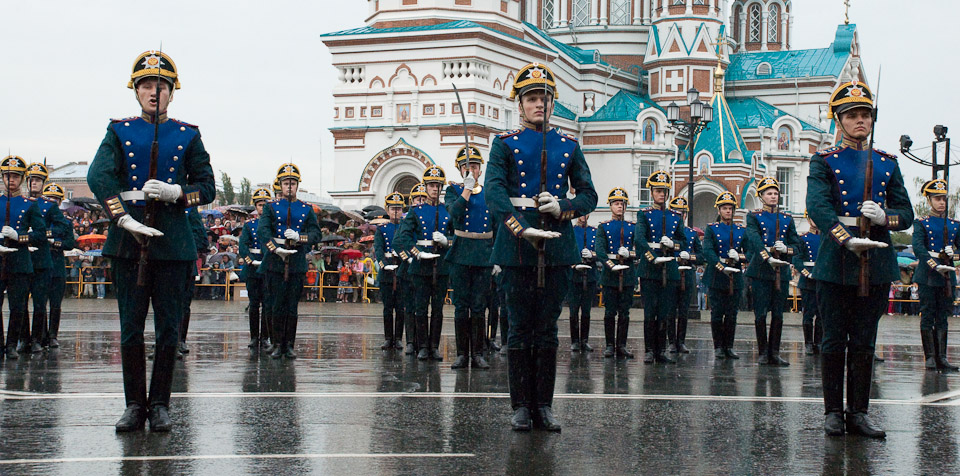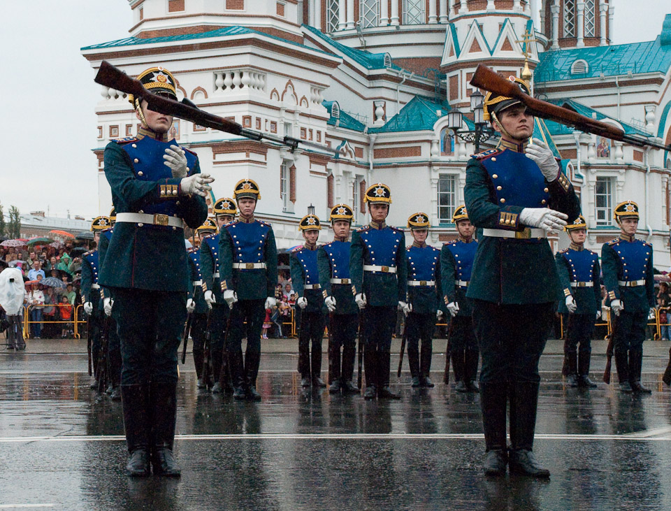 День города в Омске ежегодно празднуется в первое воскресенье августа. В 2009 году праздничные торжества открылись театрализованным парадом колонн административных округов города на Соборной площади.
