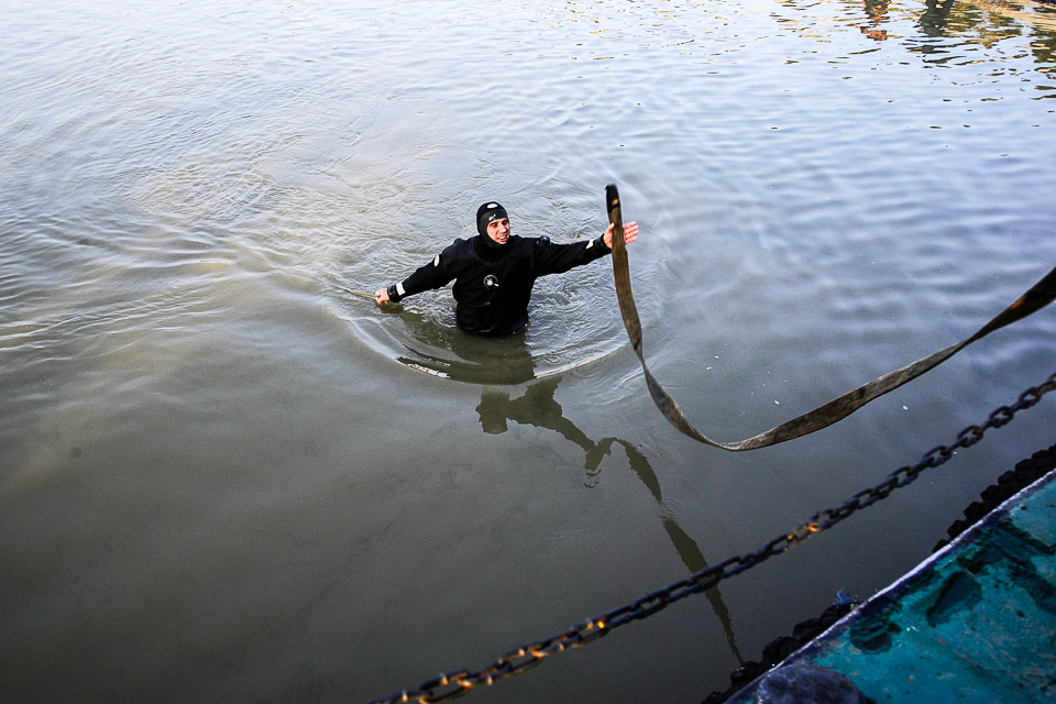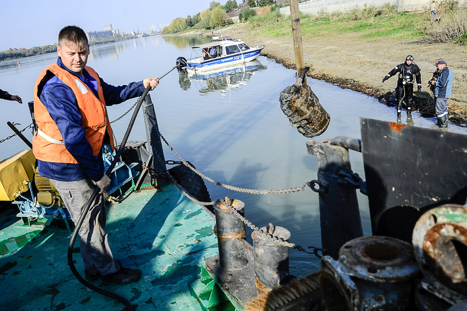 Вчера омские журналисты стали свидетелями работы бригады водолазов на реке Иртыш в районе СНТ «Заря-2».