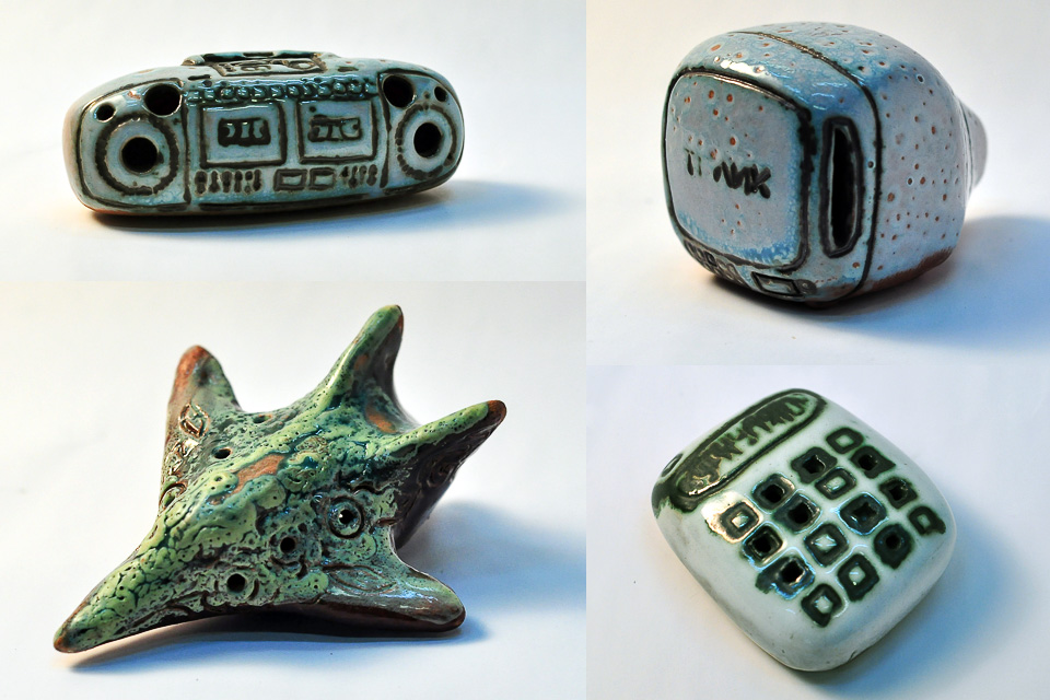 Андрей Задерий (1966 г.р.). Свистульки. 1993. Глина, лепка, эмаль
