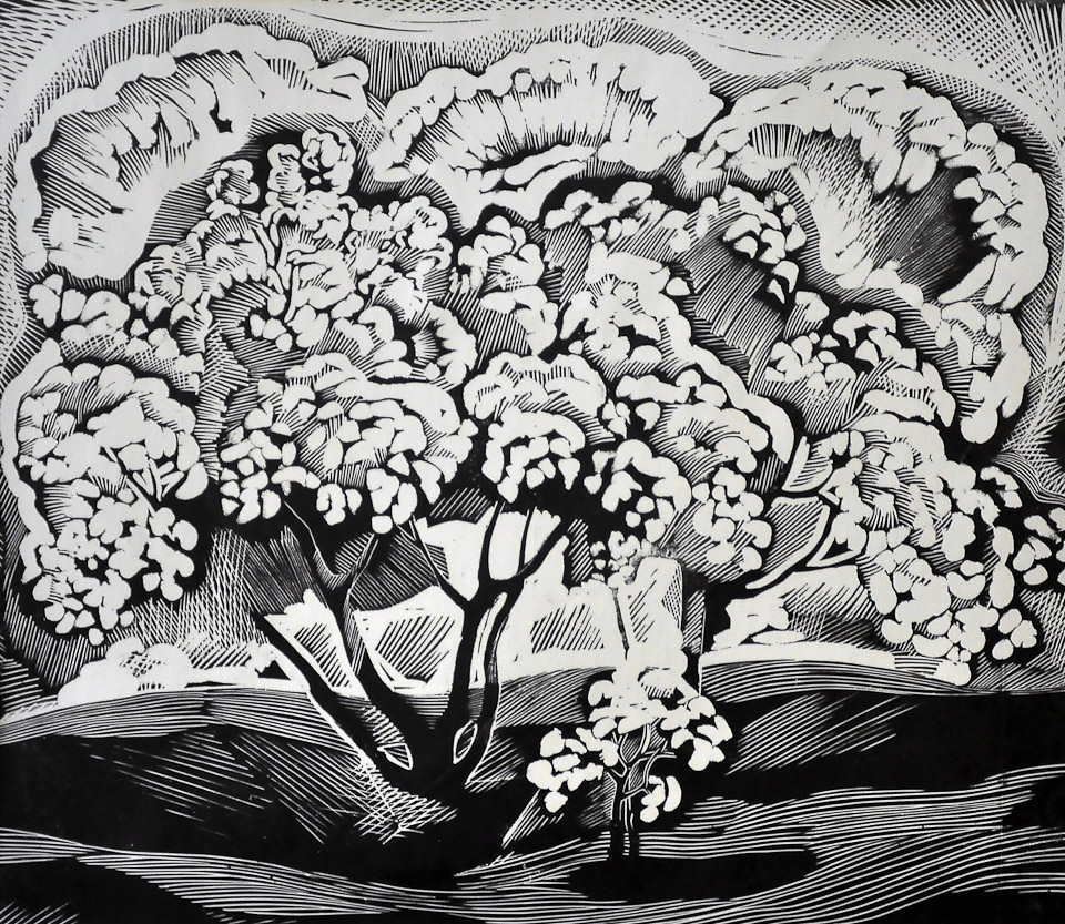 Иван Желиостов (1936 г.р.). Ранет цветет. 1975. Бумага, линогравюра