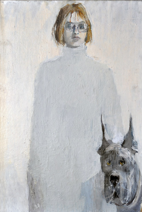 Зоя Минеева (1976 г.р.). Я и моя собака. 2000. Оргалит, масло