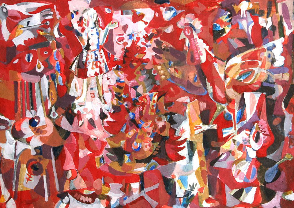 Андрей Титов (1966 г.р.). Красные спальни. Серия «Сны Лукича». 1992. Холст, масло
