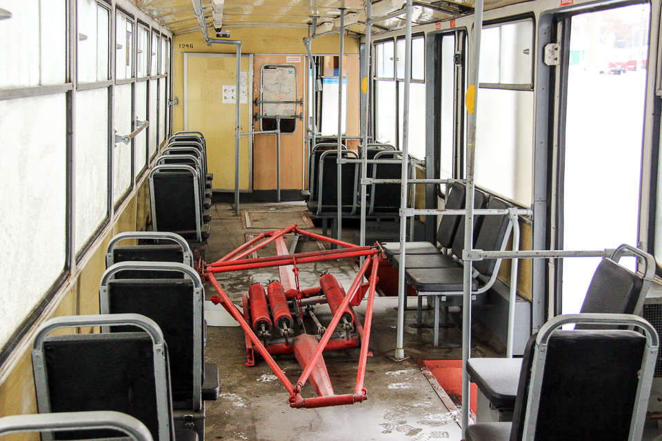Мы уже показывали те мощности на территории депо, которые используются для капитального ремонта трамваев. Менее серьезные процедуры ждут столичных «новоселов», специалистов для этого достаточно. Прежде чем выехать на сибирские пути, вагоны должны полностью соответствовать всем требованиям безопасности и комфорта.