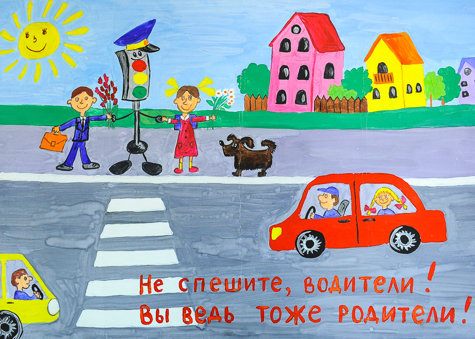 Не спешите, водители, вы ведь тоже родители! Мария Сапаева (Дом юных техников имени Ю.А. Гагарина). 2 место (6–10 лет)