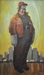 Тимур Инсинбаев. Триптих «Оранжевый автобус». Шофер. 2009. Оргалит, масло