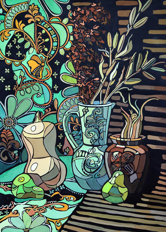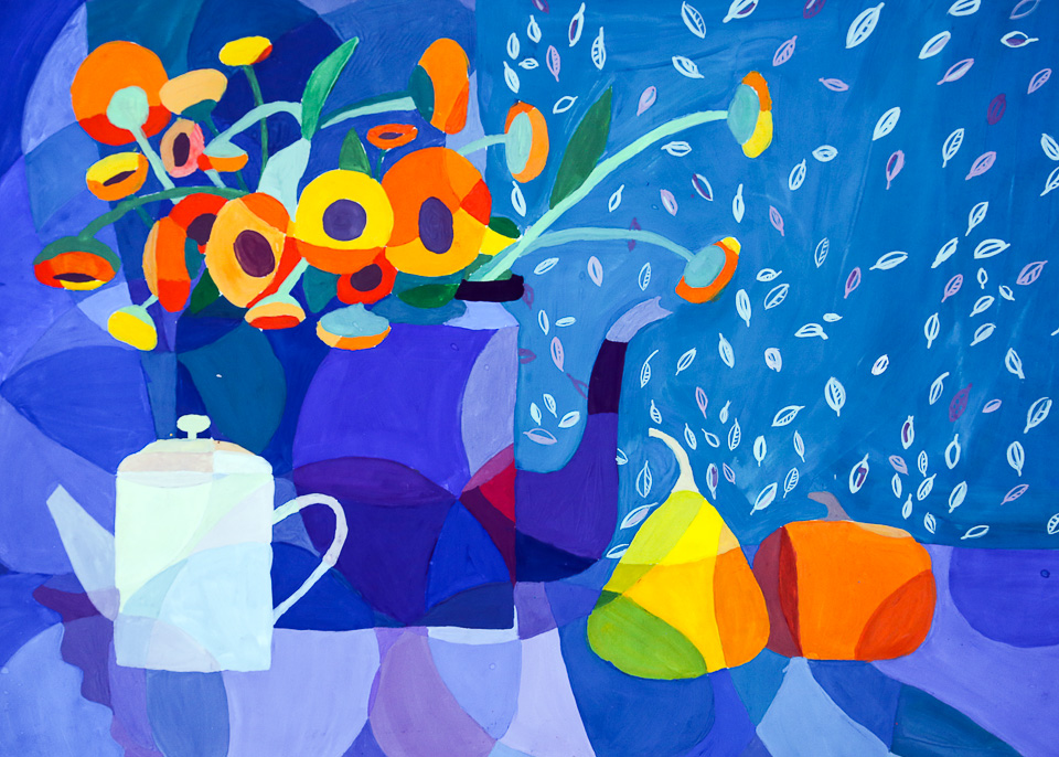 Анна Ткаченко, 12 лет. Декоративный натюрморт. Гуашь. Педагог Л.И. Белозерова (ДШИ № 3)