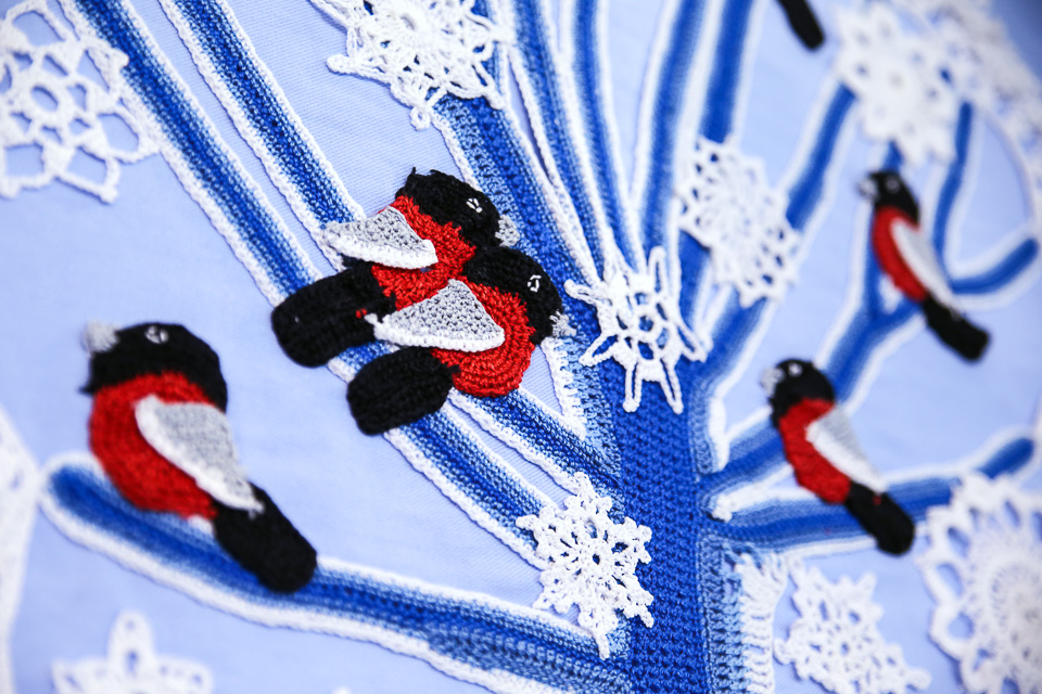 Вероника Малкова. Зимние гости (фрагмент). Нитки, крючок. Педагог Т.В. Землянская (ДШИ № 9)