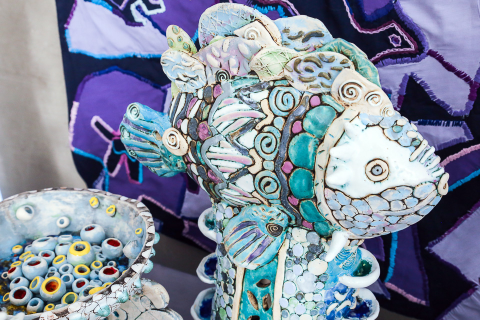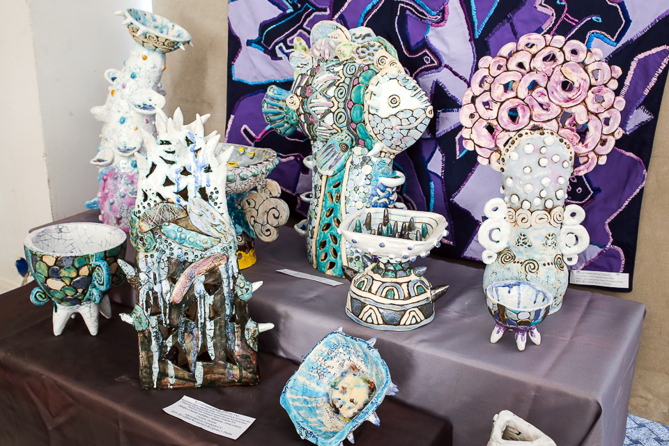 Мифы о скалах и рифах (коллективная работа, всем по 12–13 лет). Керамика, глина, стекло, глазури, оксиды. Педагог С.С. Горчакова (ДХШ № 3)