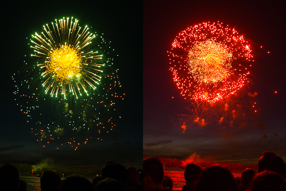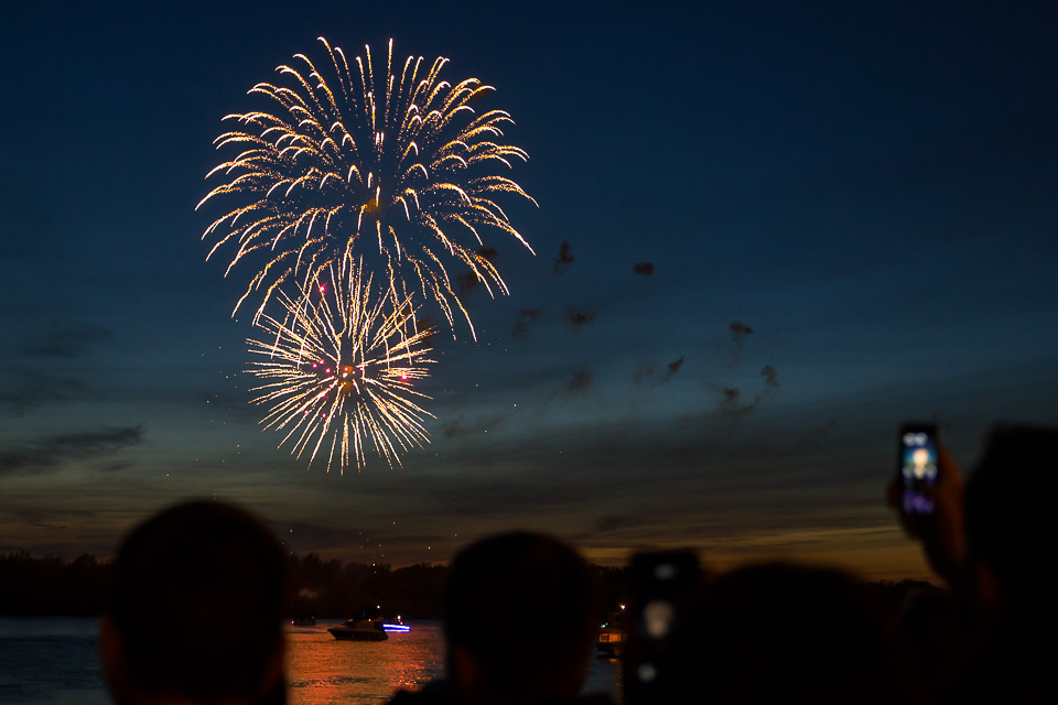Фейерверк традиционно завершает праздничные мероприятия Дня Победы. Чтобы причудливые узоры в небе увидела вся набережная, пиротехнику устанавливают на острове напротив бульвара Победы.