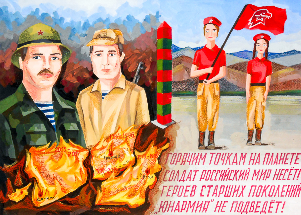 Марина Кудренко. Горячим точкам на планете солдат российский мир несет. Лауреат (15–17 лет, «Профи»). Школа № 118. Педагог Ж.Л. Тарутина
