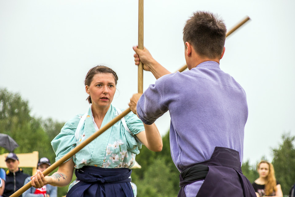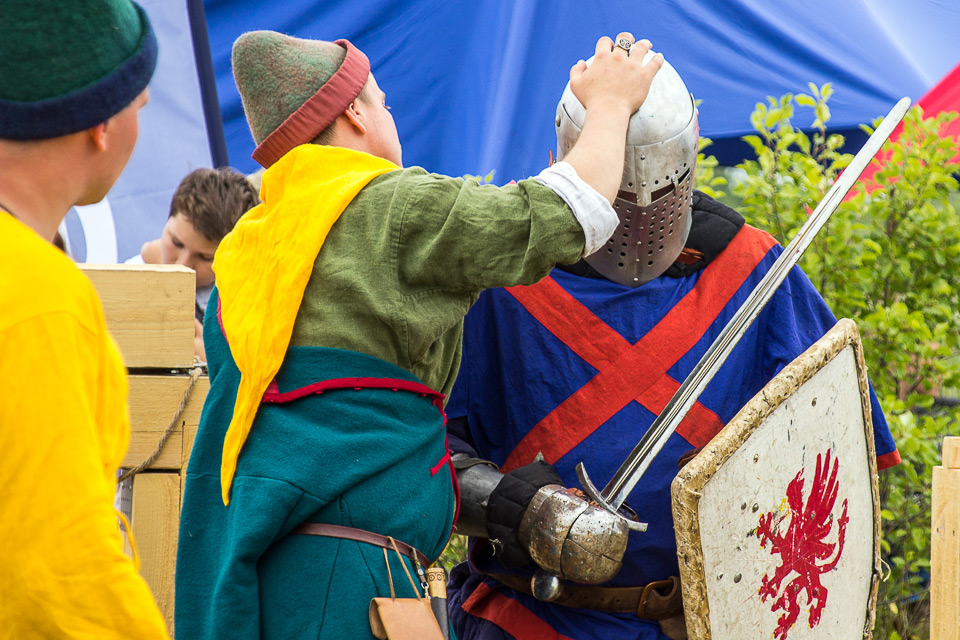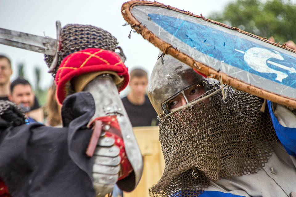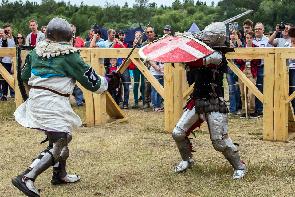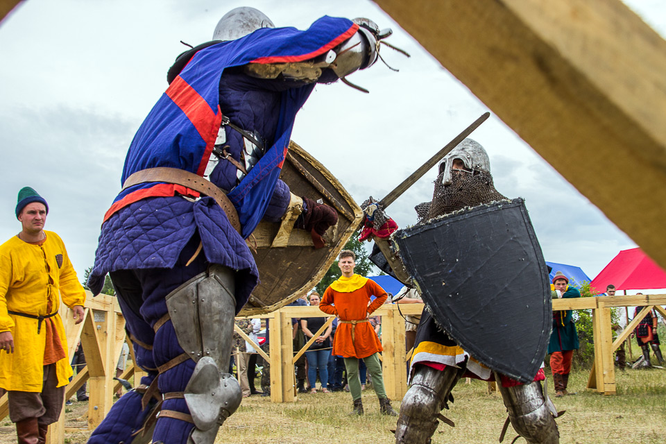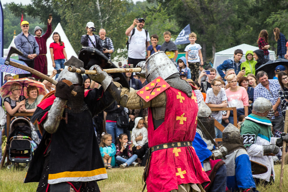 В минувшие выходные на двое суток парк Победы стал домом для десятков рыцарей и прекрасных дам, разбивших походные шатры на живописной поляне у озера.