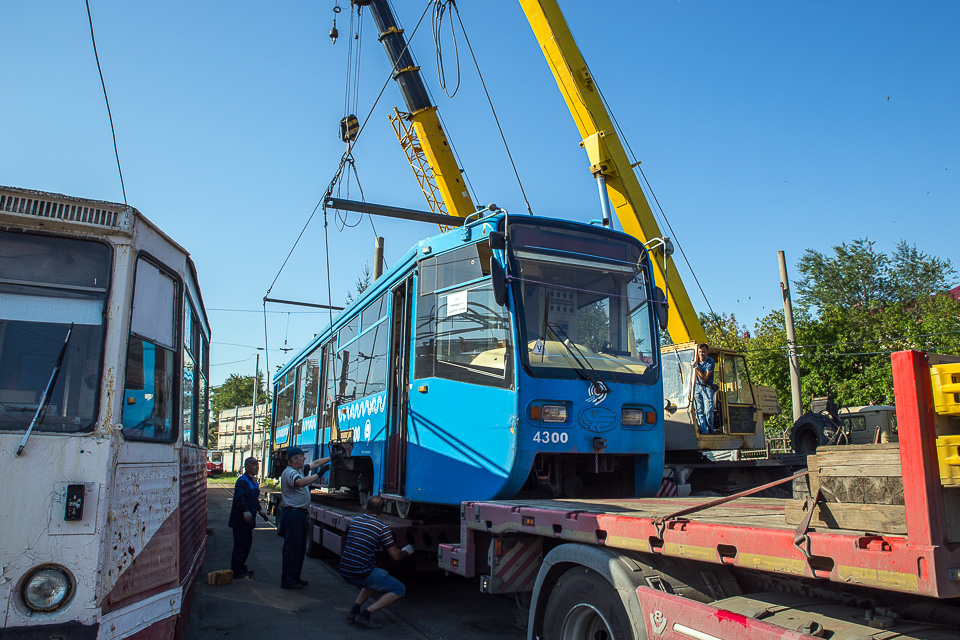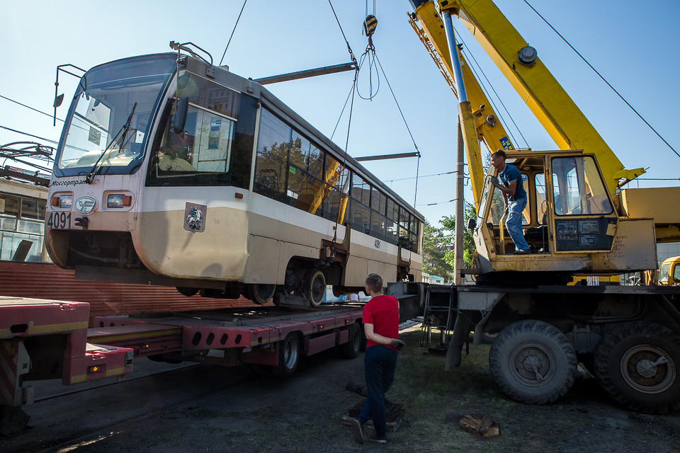 Очередная партия вагонов, переданных в Омск из столицы, прибыла в трамвайное депо. Благодаря мастерству водителей, крановщиков и рабочих разных специальностей доставка заняла обычные 4 дня, а разгрузка прошла в штатном режиме.