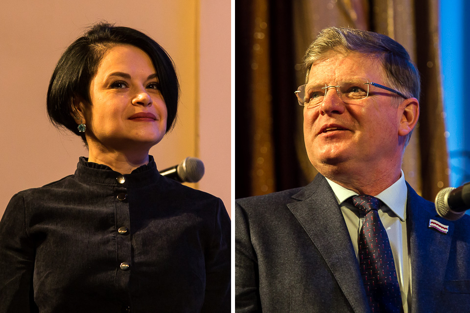 На сцене — заместитель мэра Анастасия Терпугова и спикер горсовета Владимир Корбут