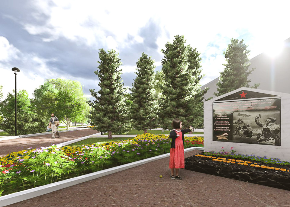 Замостить дорожки функциональной и долговечной плиткой, разбить новые цветники вдоль главной пешеходной оси, поставить скамейки и урны, добавить оригинальные архитектурные элементы — символы, которые бы напоминали горожанам о бессмертном подвиге двух братьев в годы Великой Отечественной войны и дополняли бы в смысловом отношении уже установленный памятный знак, продумать организацию безбарьерной среды, найти удачное место для спортивной и игровой площадок — секреты хорошего общественного пространства не так уж сложны…