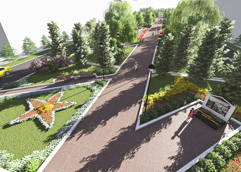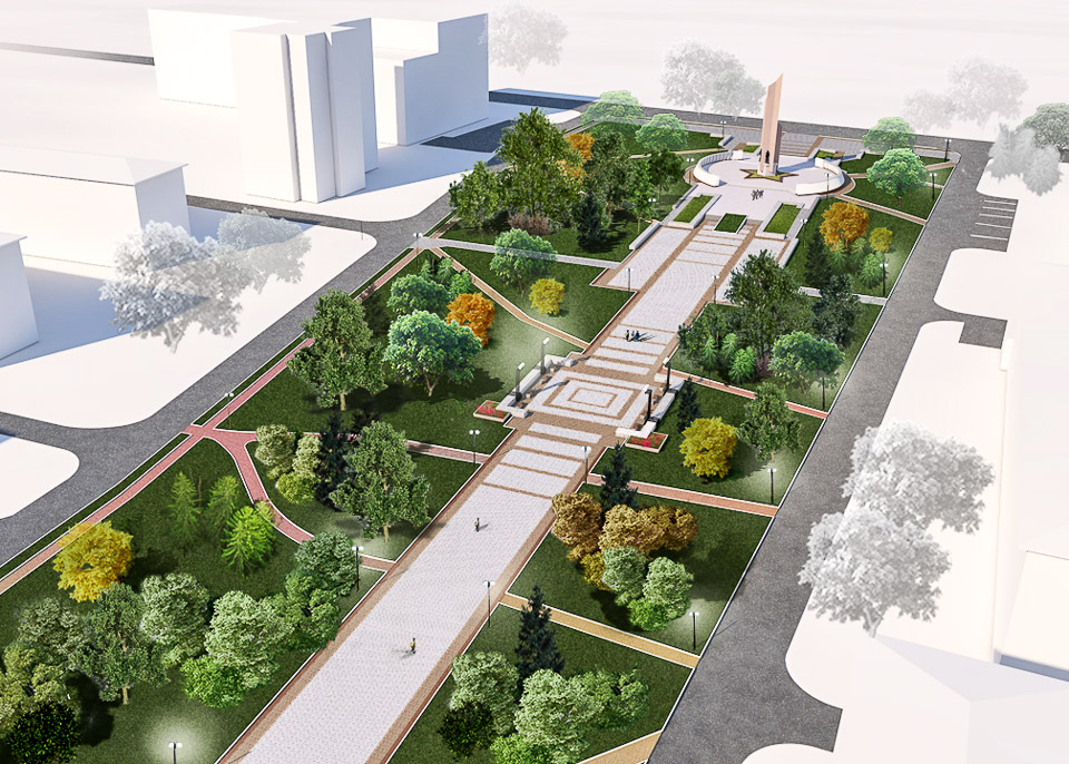 Что не устраивает горожан? Тротуары — разбитые, озеленение — хаотичное и явно недостаточное, пешеходная зона совсем не соответствует современным требованиям к безбарьерной среде. Все это учли при подготовке дизайн-проекта. Он решает две задачи: мемориальный комплекс благодаря найденным архитектурным решениям станет еще более величественным, и при этом горожане получат еще одно по-настоящему удобное и комфортное место для семейного отдыха с оригинальным освещением, удобными тротуарами и пешеходными дорожками. зеленый и тенистый сквер будет одинаково доступен и для инвалидов, и для матерей с колясками.