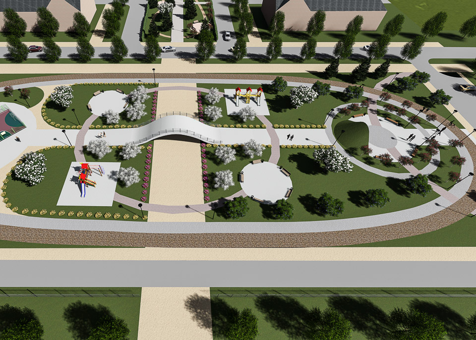 Начать предлагается с обустройства входной группы. Затем в парке появится детская площадка, спортивные сооружения, пешеходные дорожки и тенистые аллеи.