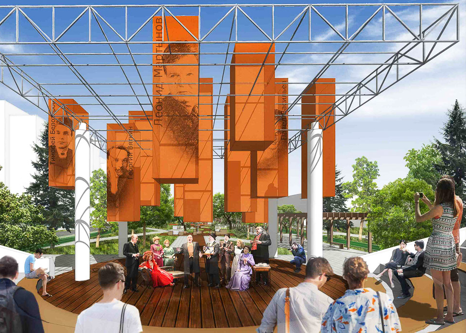 У коллектива архитекторов появилась смелая мысль — в рамках одной территории сформировать и удобный пешеходный транзит, и настоящий парк. Оригинальная уличная мебель, новые зеленые насаждения, оригинальные ландшафтные решения… Все это задумывается как знаковая форма нового прочтения городского памятного места, нового обозначения топонимической характеристики. Хорошая идея омских краеведов по увековечиванию памяти литераторов, чья жизнь и судьба пересеклась с жизнью Омска, получает в предлагаемой концепции свое дальнейшее развитие на новом качественном уровне.