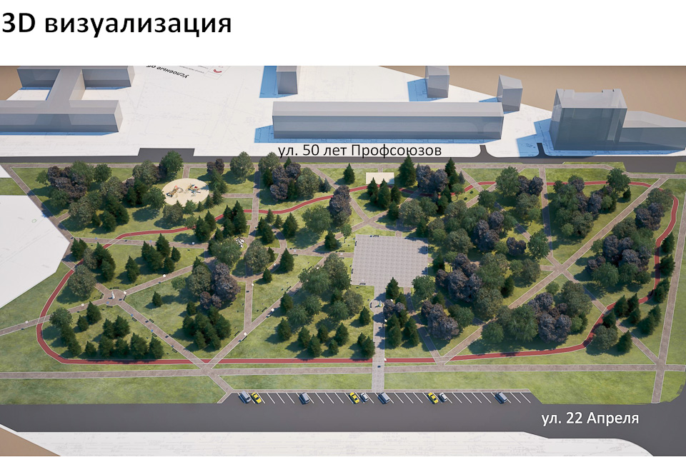 Жители близлежащих жилых микрорайонов по достоинству оценят новое озеленение сквера с его уютными для прогулок тропинками и освежающий фонтан; велодорожку, детскую и спортивную площадки, малые архитектурные формы — все это составные части дизайн-проекта, представленного на суд омичей. Кстати, имеющиеся зеленые насаждения будут максимально сохранены.